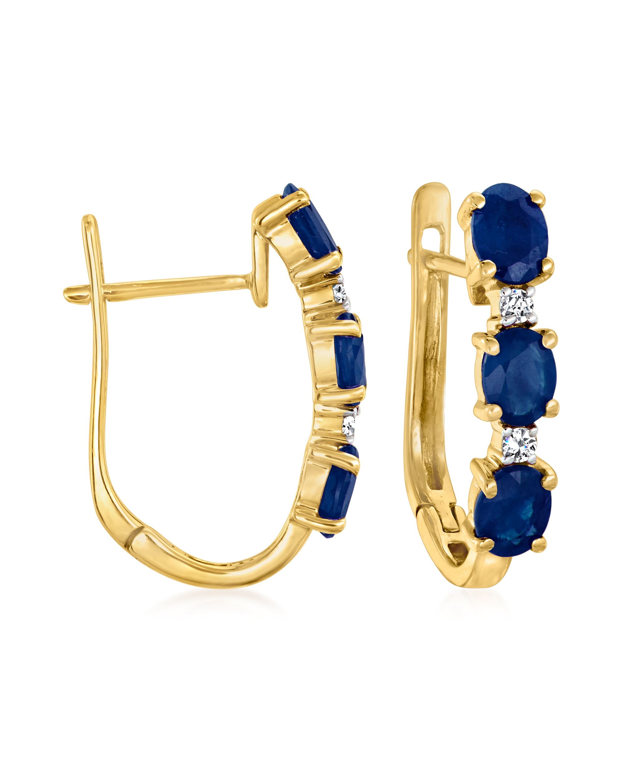 Ross-Simons Sapphire and Diamond-Accented Hoop Earrings in 14kt Yellow Gold