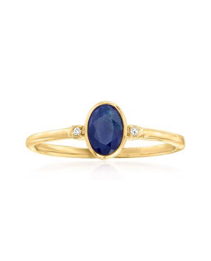 Ross-Simons is always looking for new ways to reinvent essential jewelry styles. RS Pure. Modern designs that complete your outfit and complement your personality. Sized just right for stacking! This chic ring sparkles with a beautiful .70 carat oval sapphire center accented by diamonds on the sides. Set in glowing 14kt yellow gold. 1/4" wide. Sapphire ring. Each Ross-Simons item arrives in a fine jewelry presentation box. Shop Ross-Simons jewelry risk-free as all items include a 30-day, 100% money-back guarantee.Stone InformationGem Type 1 - SapphireStone Cut 1 - Good-CutStone Color 1 - BlueStone Clarity 1 - BlueStone Shape 1 - Oval-ShapeStone Creation Method 1 - NaturalStone Treatment Method 1 - HeatedStone Weight 1 - 0.70 CaratsNumber Of Stones 1 - 1Gem Type 2 - DiamondStone Cut 2 - Good-CutStone Color 2 - H-IStone Clarity 2 - I1Stone Shape 2 - Round-ShapeStone Creation Method 2 - NaturalStone Treatment Method 2 - Not-TreatedStone Weight 2 - 0.01 CaratsNumber Of Stones 2 - 2