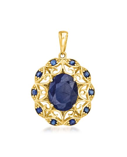 Ross-Simons Sapphire Scrolled Pendant in 14kt Yellow Gold
