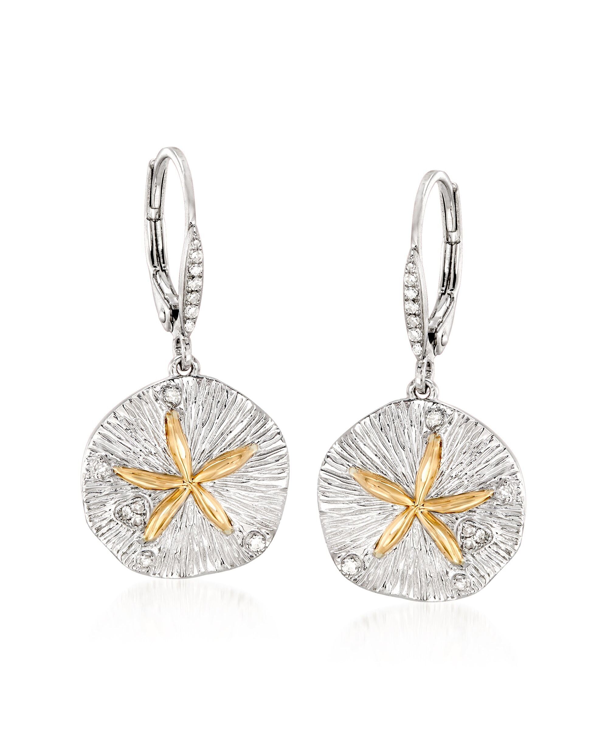 Ross-Simons Sterling Silver and 14kt Gold Sand Dollar Drop Earrings With . Diamonds