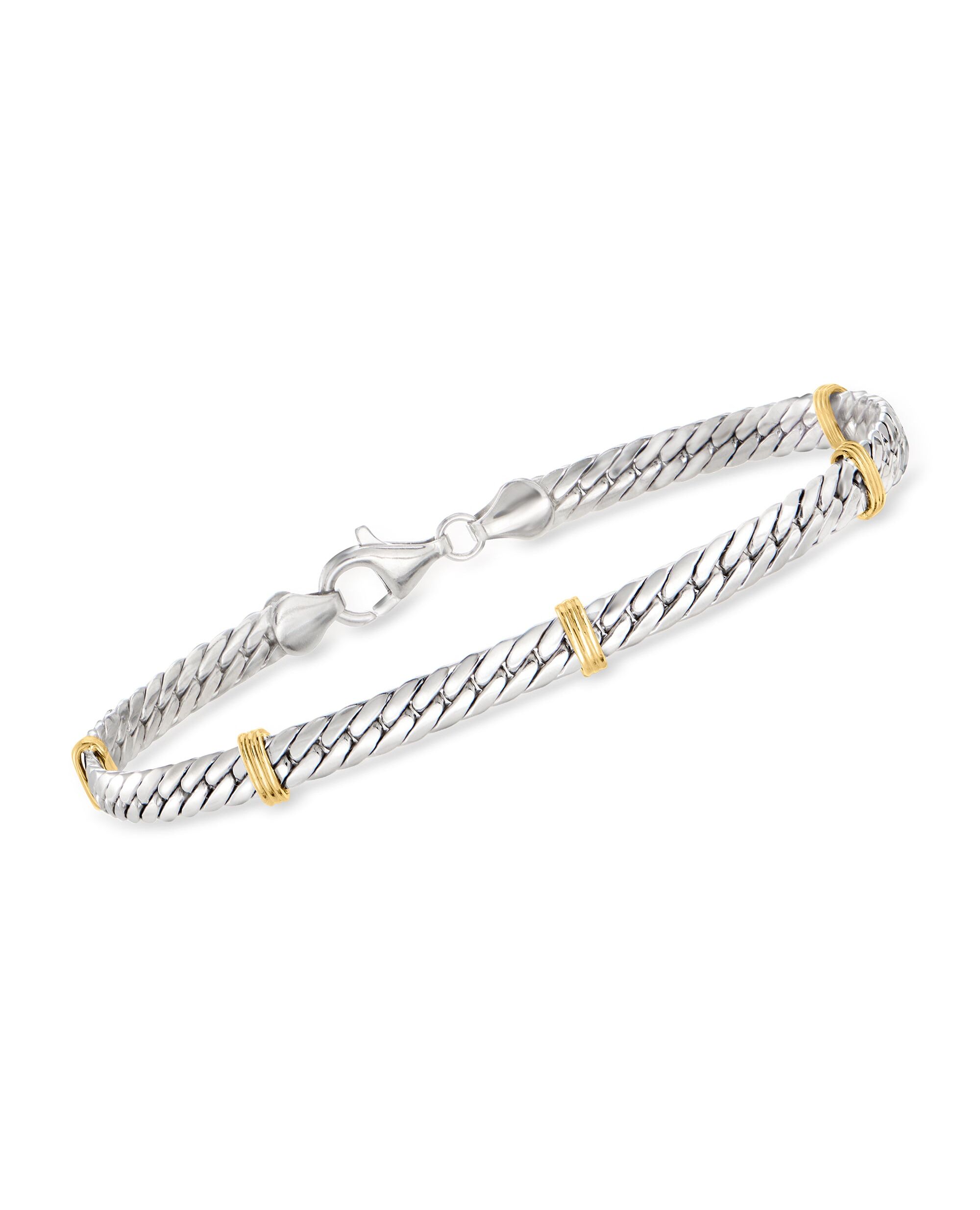 Ross-Simons Sterling Silver and 14kt Yellow Gold Cuban-Link Bracelet