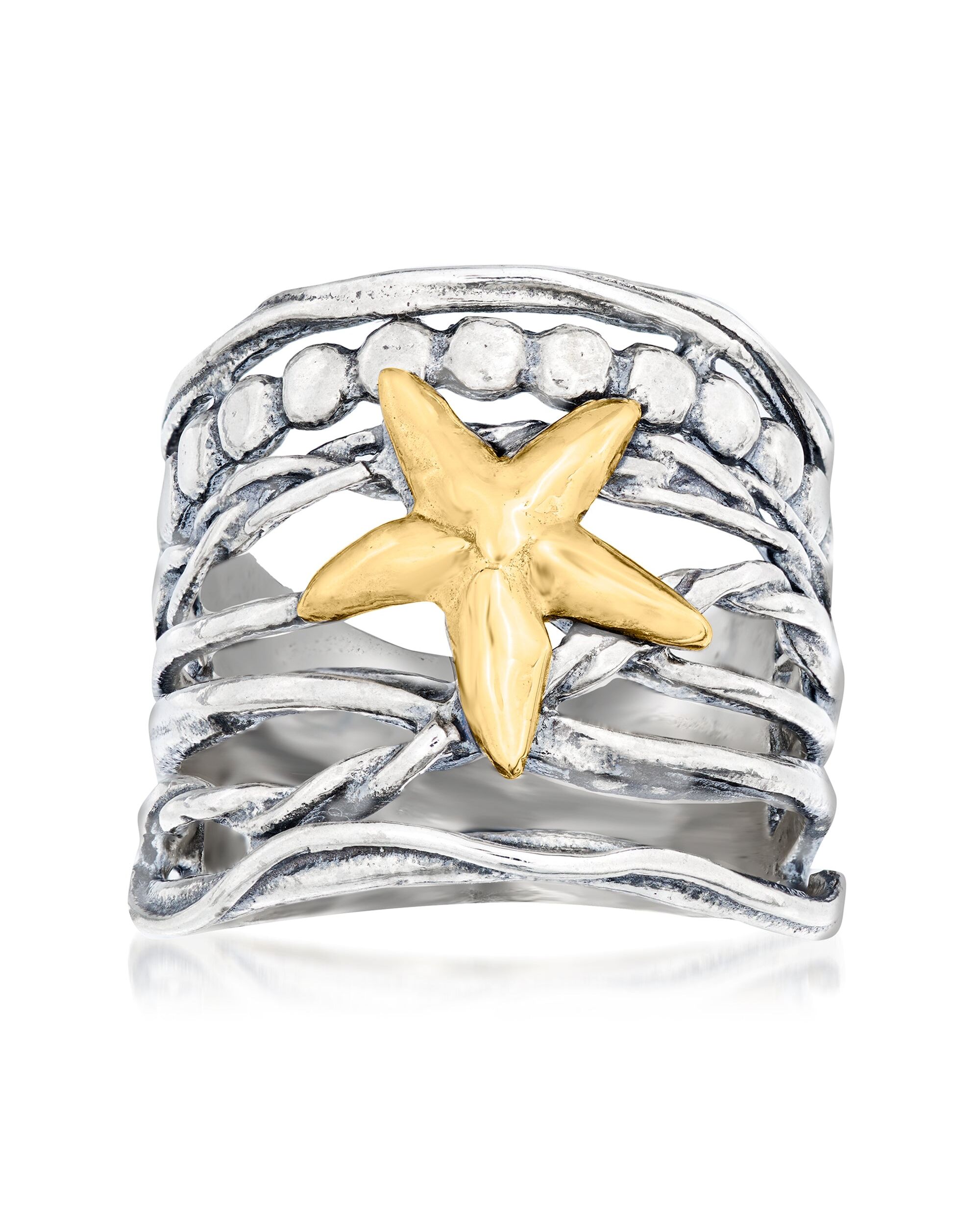 Ross-Simons Sterling Silver and 14kt Yellow Gold Multi-Row Starfish Ring