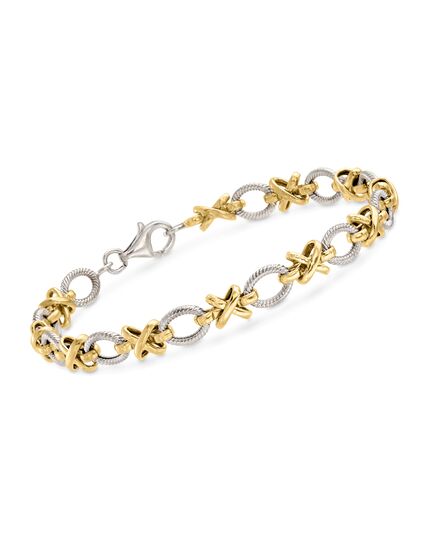 Ross-Simons Sterling Silver and 14kt Yellow Gold Xo Link Bracelet