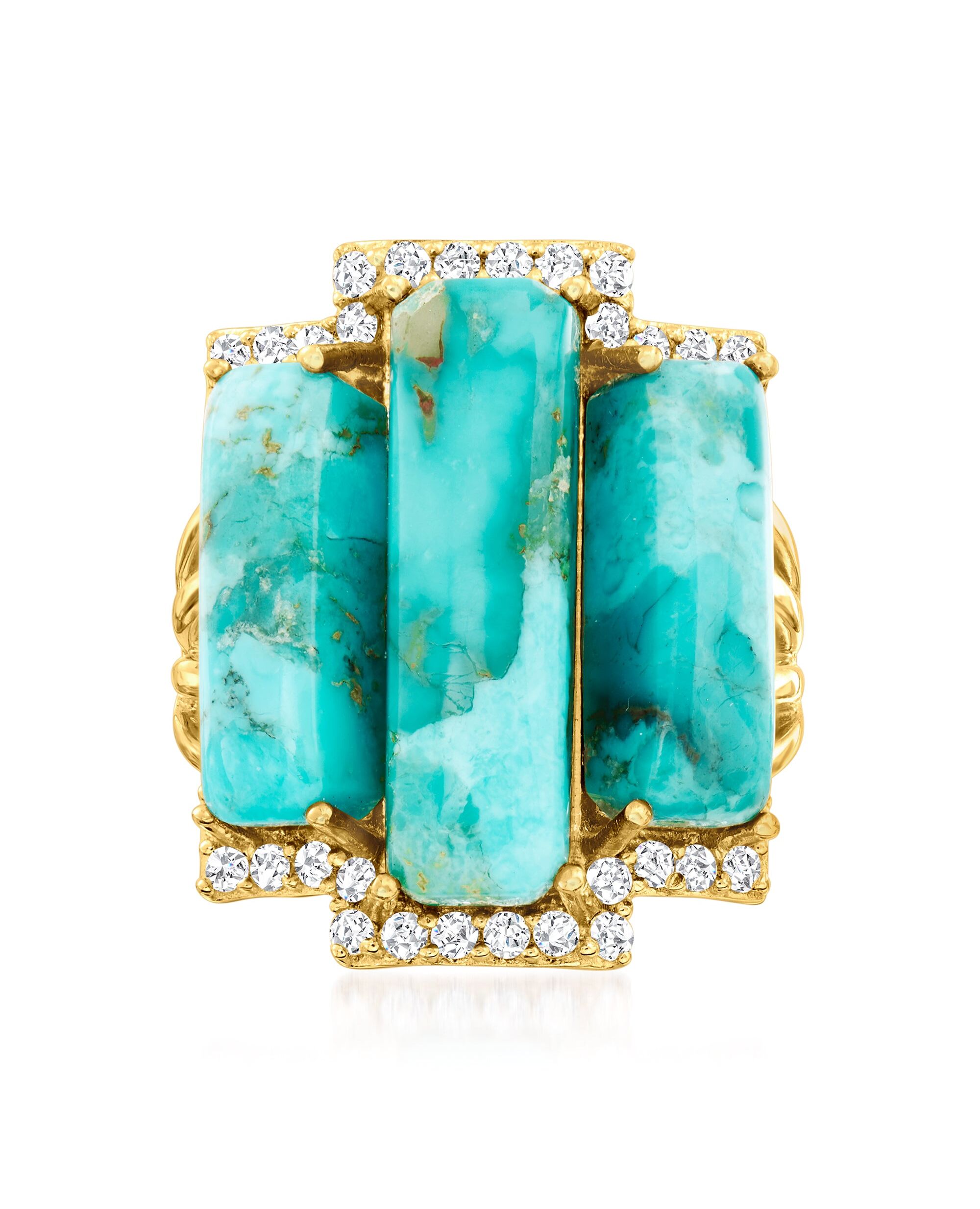 Ross-Simons Turquoise and White Topaz Ring in 18kt Gold Over Sterling