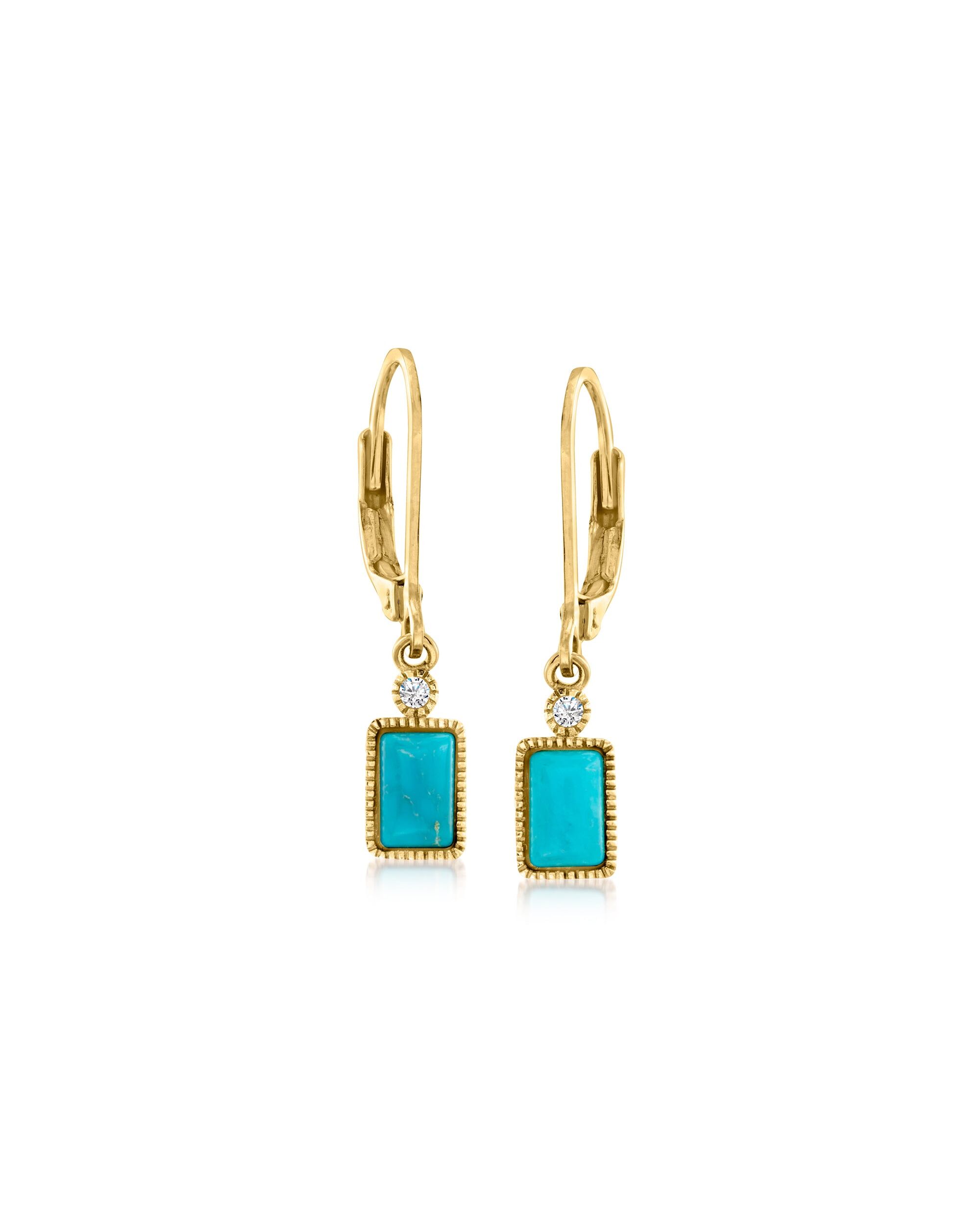 Ross-Simons Turquoise Drop Earrings in 14kt Yellow Gold