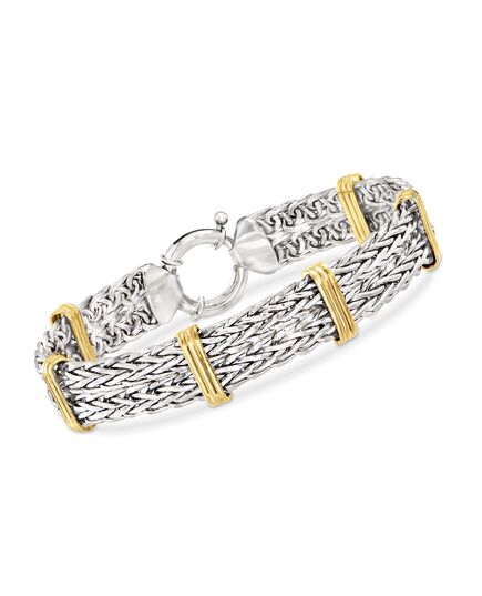 Ross-Simons Two-Tone Double Wheat-Link Bracelet in Sterling Silver and 14kt Gold Over Sterling