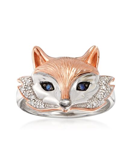 Established in 1952, Ross-Simons presents contemporary styles with a timeless appeal. An RS exclusive. This ring portrays the intriguing forest creature in style! Crafted of textured and polished sterling silver and 18kt rose gold over sterling silver with black rhodium, the fox comes to life with sapphire-accented eyes and diamond-accented tufts. 5/8" wide. 18kt rose gold over sterling silver and sterling silver fox ring. Each Ross-Simons item arrives in a fine jewelry presentation box. Shop Ross-Simons jewelry risk-free as all items include a 30-day, 100% money-back guarantee.Stone InformationGem Type 1 - SapphireStone Cut 1 - Good-CutStone Color 1 - BlueStone Clarity 1 - BlueStone Shape 1 - Round-ShapeStone Creation Method 1 - NaturalStone Treatment Method 1 - HeatedStone Weight 1 - 0.04 CaratsNumber Of Stones 1 - 2Gem Type 2 - DiamondStone Cut 2 - Good-CutStone Color 2 - H-IStone Clarity 2 - I1Stone Shape 2 - Round-ShapeStone Creation Method 2 - NaturalStone Treatment Method 2 - Not-TreatedStone Weight 2 - 0.05 CaratsNumber Of Stones 2 - 18