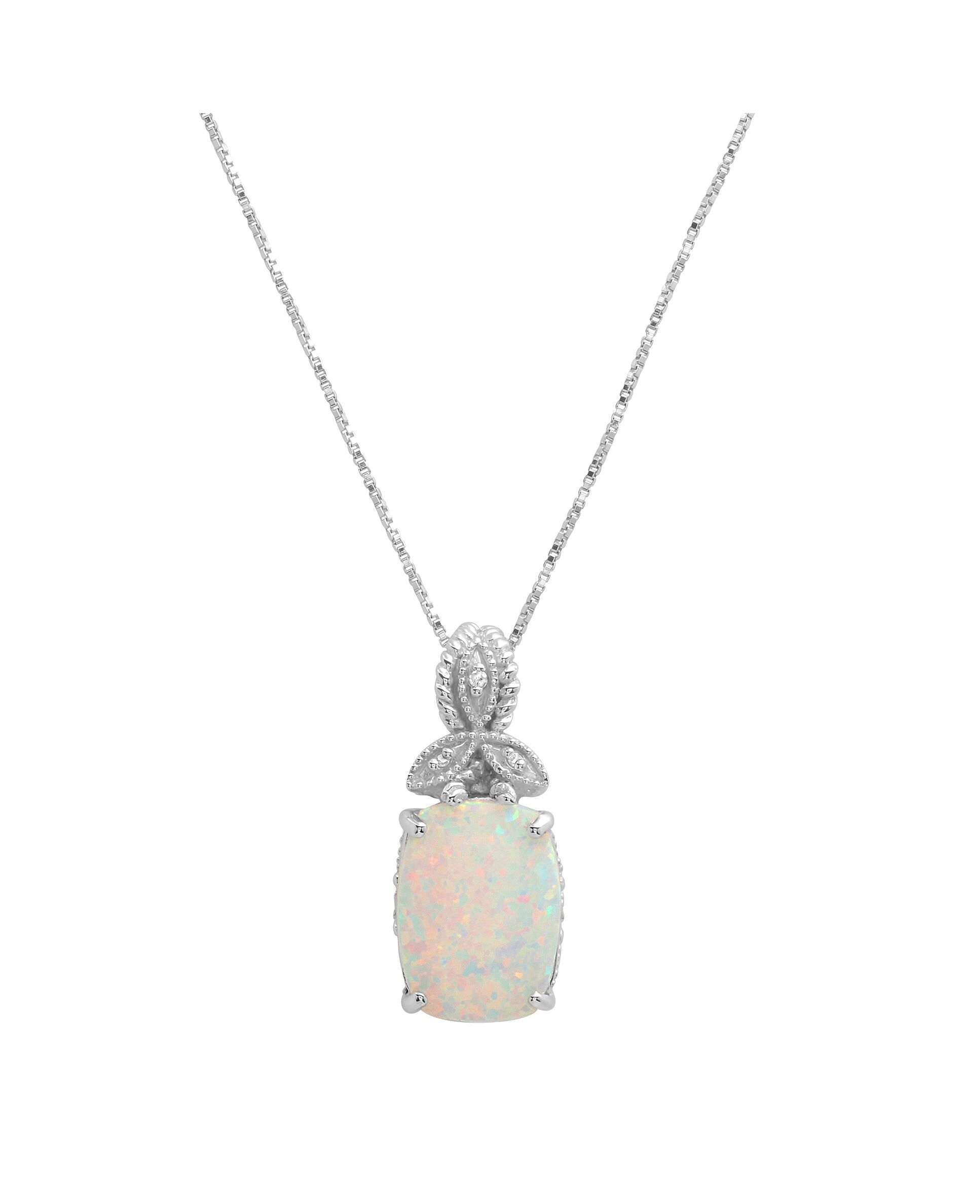 Sterling Silver 13x10mm Created Opal and Diamond Accent Pendant Necklace, 18"