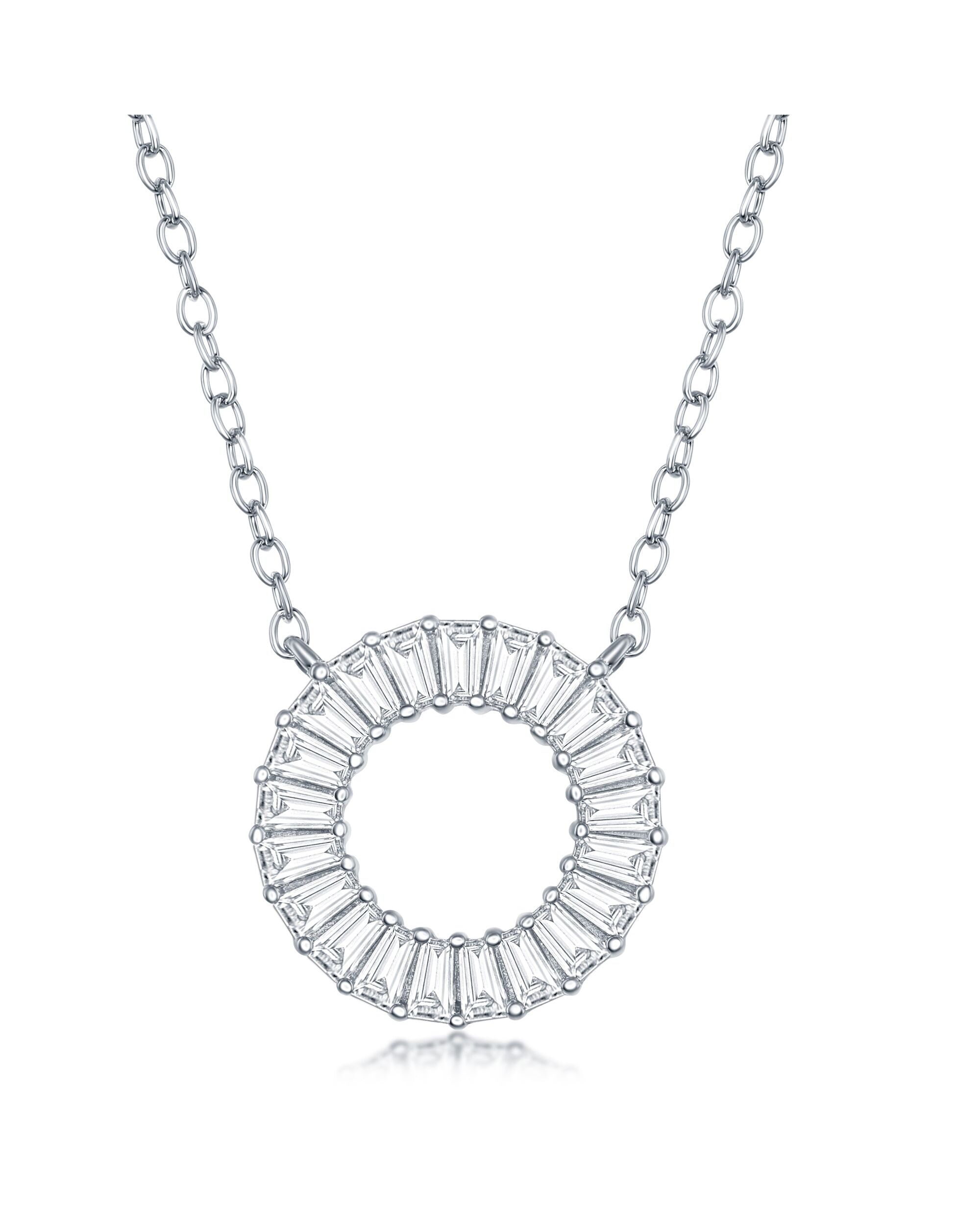 Sterling Silver Baguette CZ Open Circle Necklace