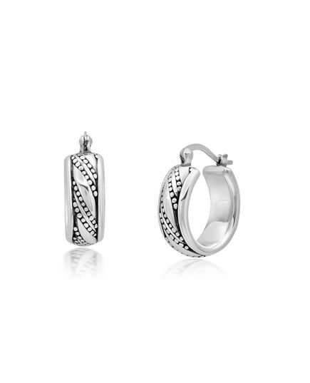 Sterling Silver Beaded Wave Hoop Earrings