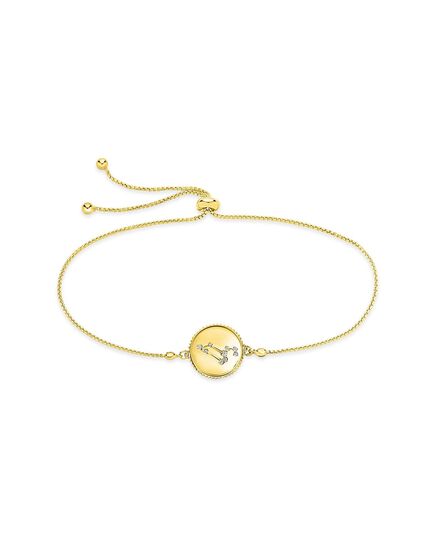 No matter what your sign, you can always shine! This disk bolo bracelet is available in every zodiac sign, and in both gold and silver tones. It makes a perfect birthday gift for someone you love. Adjustable for a perfect fit. Materials - 14K gold vermeil or sterling silver, cubic zirconia Features - Adjustable up to 10" length, 0.5" pendant, 1mm CZ stones, Lead & Nickel free, bolo/sliding knot- adjustable, one size fits most