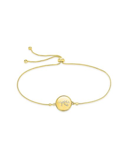 No matter what your sign, you can always shine! This disk bolo bracelet is available in every zodiac sign, and in both gold and silver tones. It makes a perfect birthday gift for someone you love. Adjustable for a perfect fit. Materials - 14K gold vermeil or sterling silver, cubic zirconia Features - Adjustable up to 10" length, 0.5" pendant, 1mm CZ stones, Lead & Nickel free, bolo/sliding knot- adjustable, one size fits most