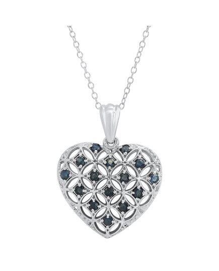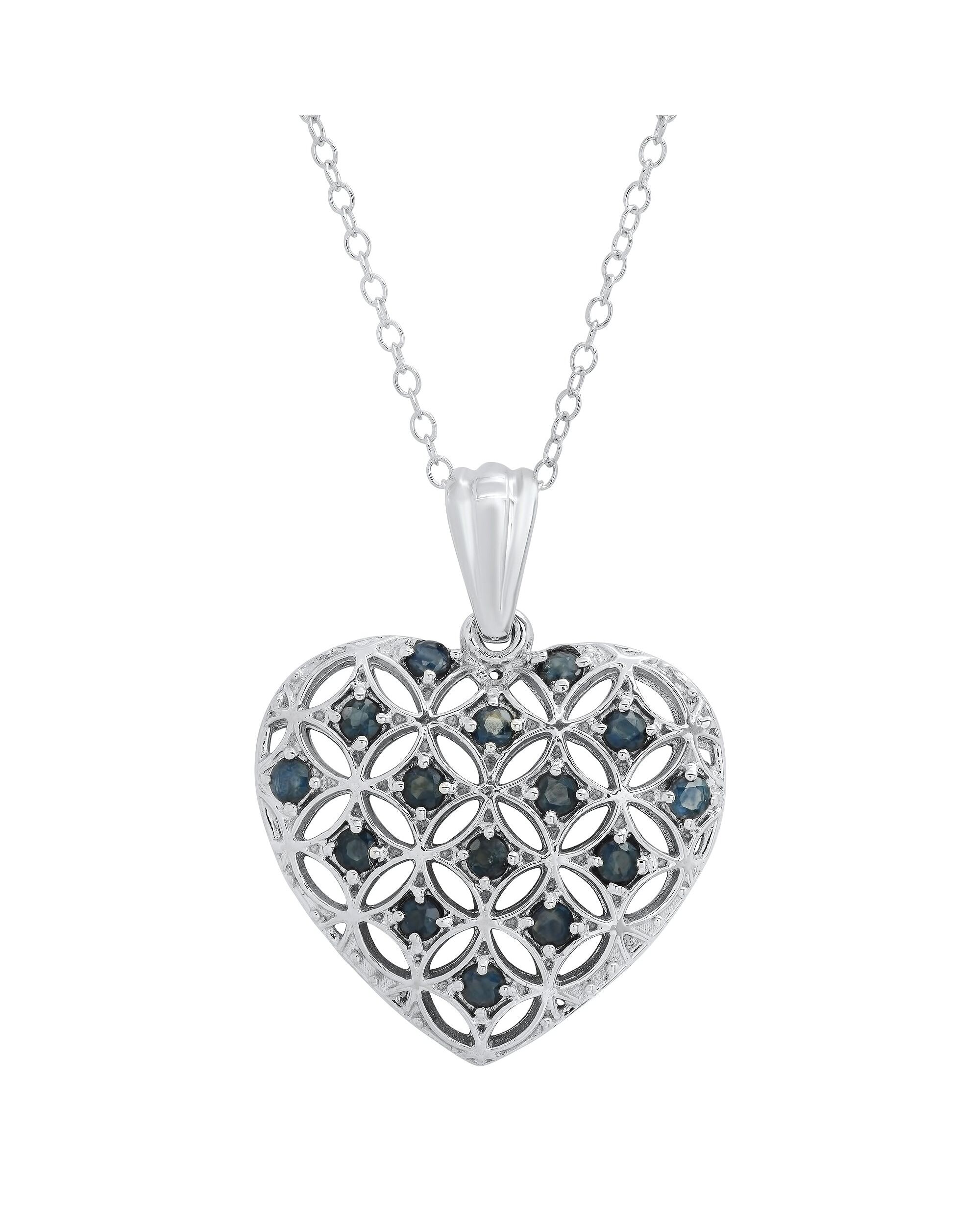 Sterling Silver Genuine Gemstone Heart Shape Filigree Pendant 18' in