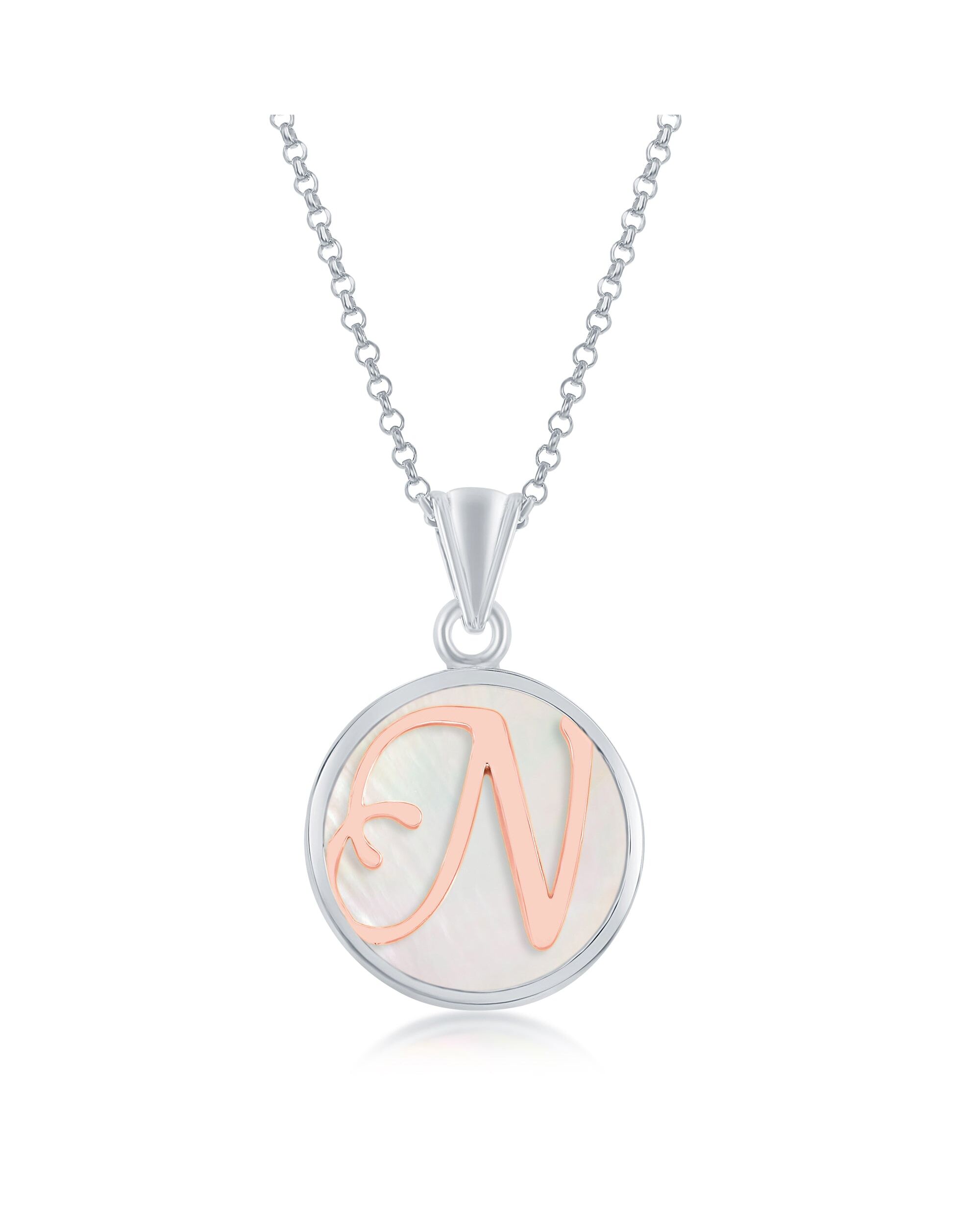 Sterling Silver MOP Pendant, Rose Gold Script Initial W/Chain