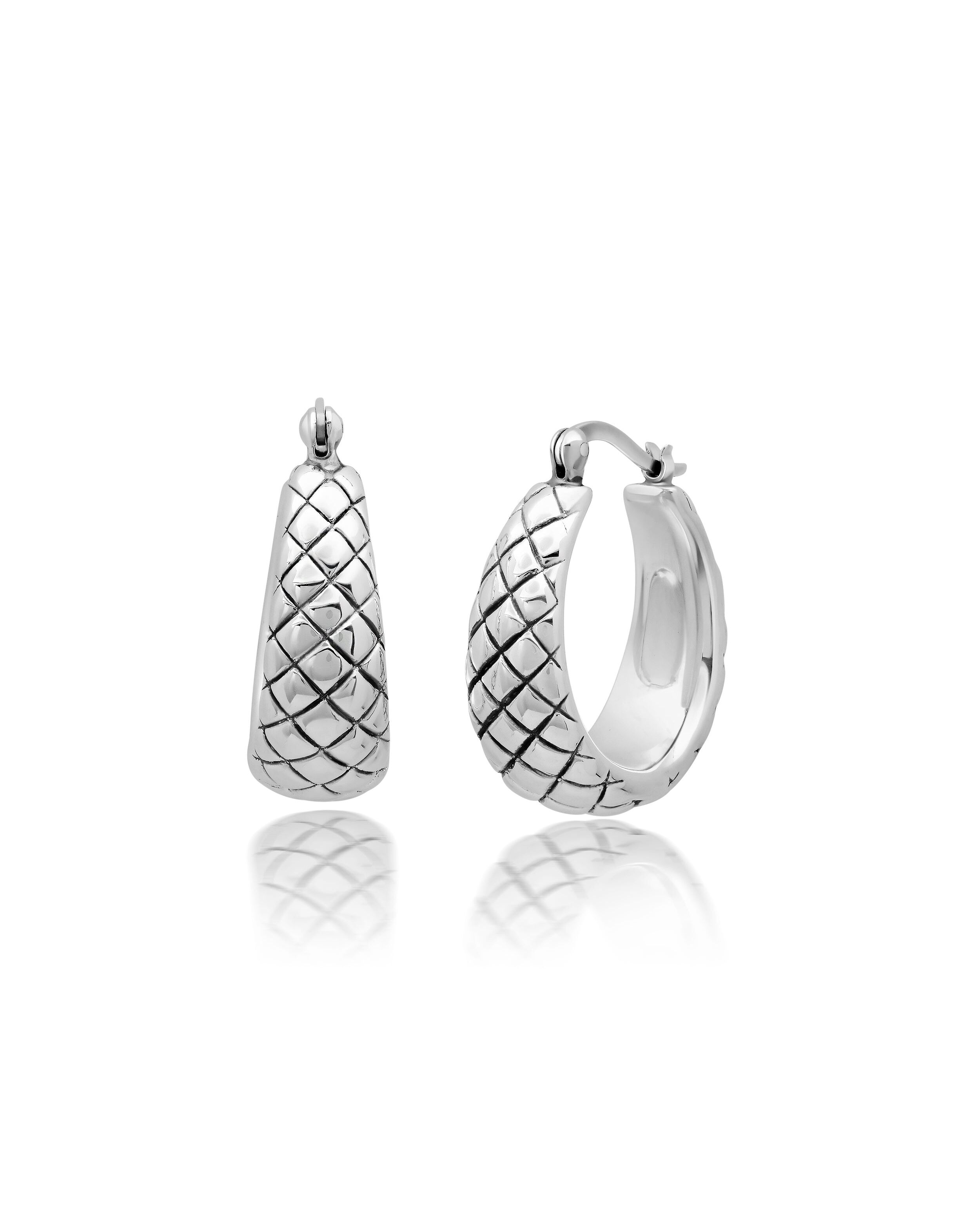 Our stunning sterling silver oval diamond weave hoop earring makes the perfect accessory for casual and formal occasions. Each earring is masterfully crafted in sterling silver (22X23X10MM).