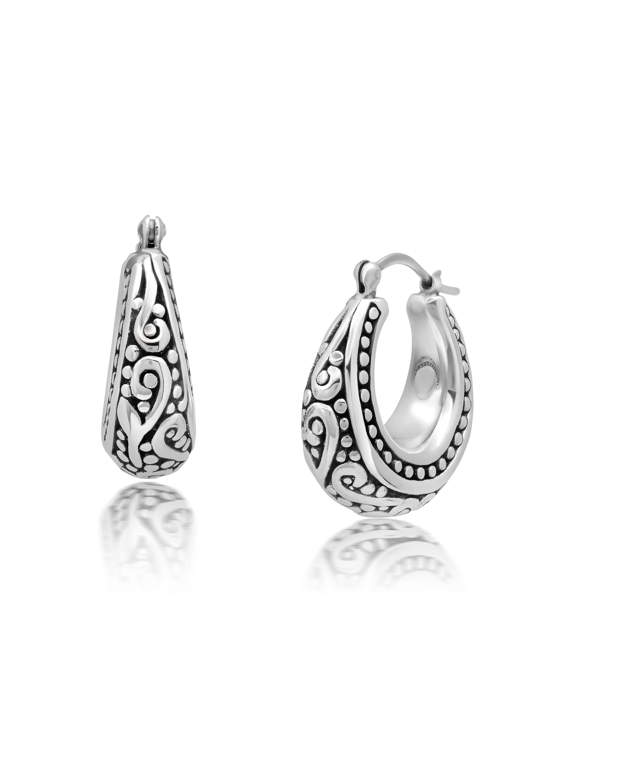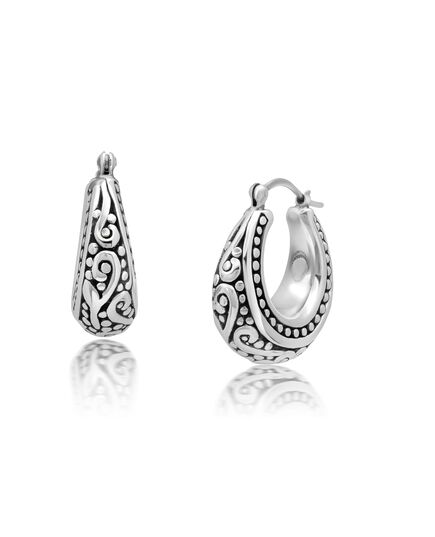 Sterling Silver Oval Filigree and Beaded hoop Earrings