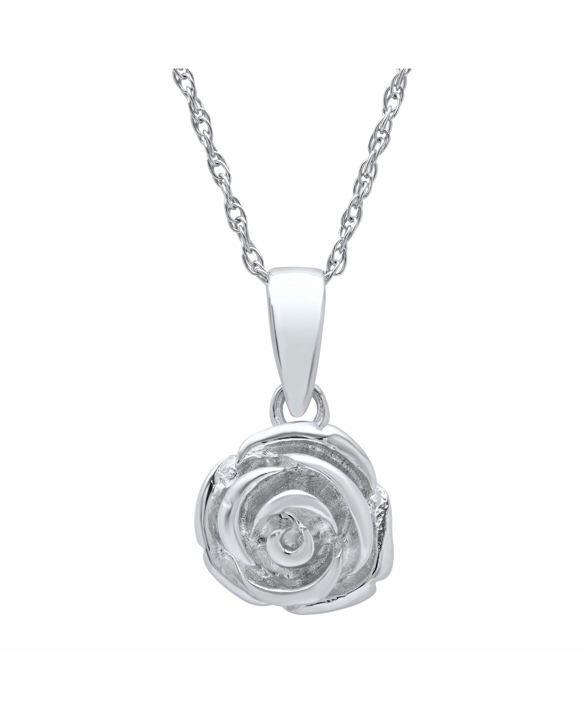 Sterling Silver Rose Pendant Necklace on 18 inch Rope Chain