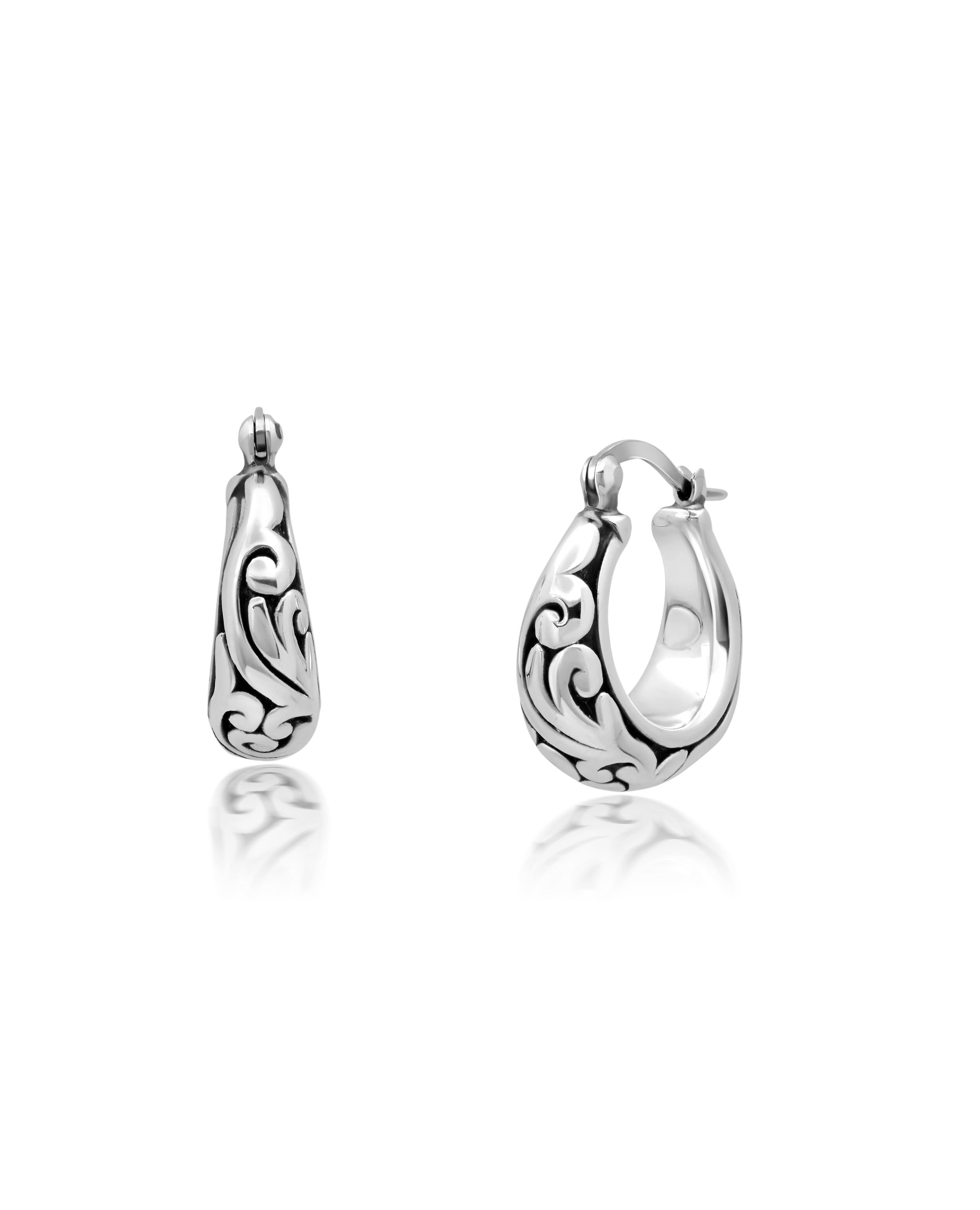 Sterling Silver Round Filigree Hoop Earrings