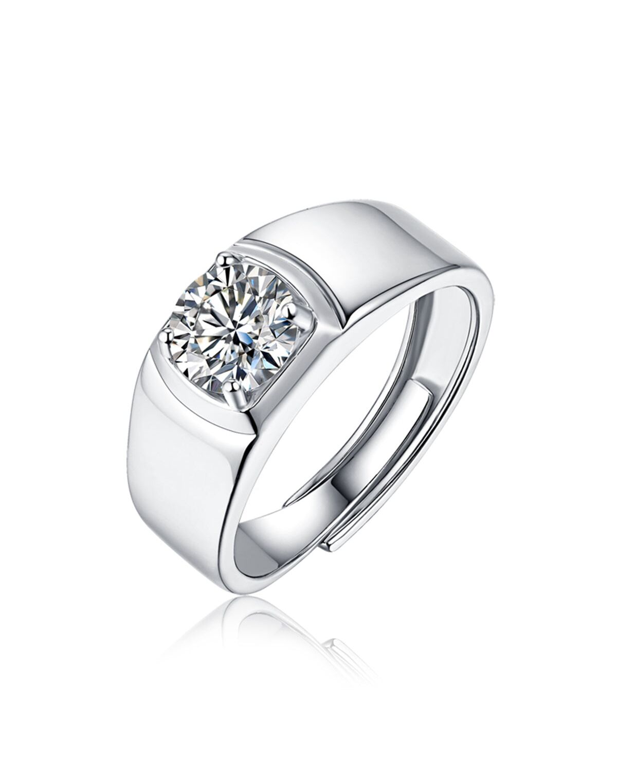 Sterling Silver with 1ct Round Lab Created Moissanite Flush Set Solitaire Engagement Anniversary Adjustable Ring