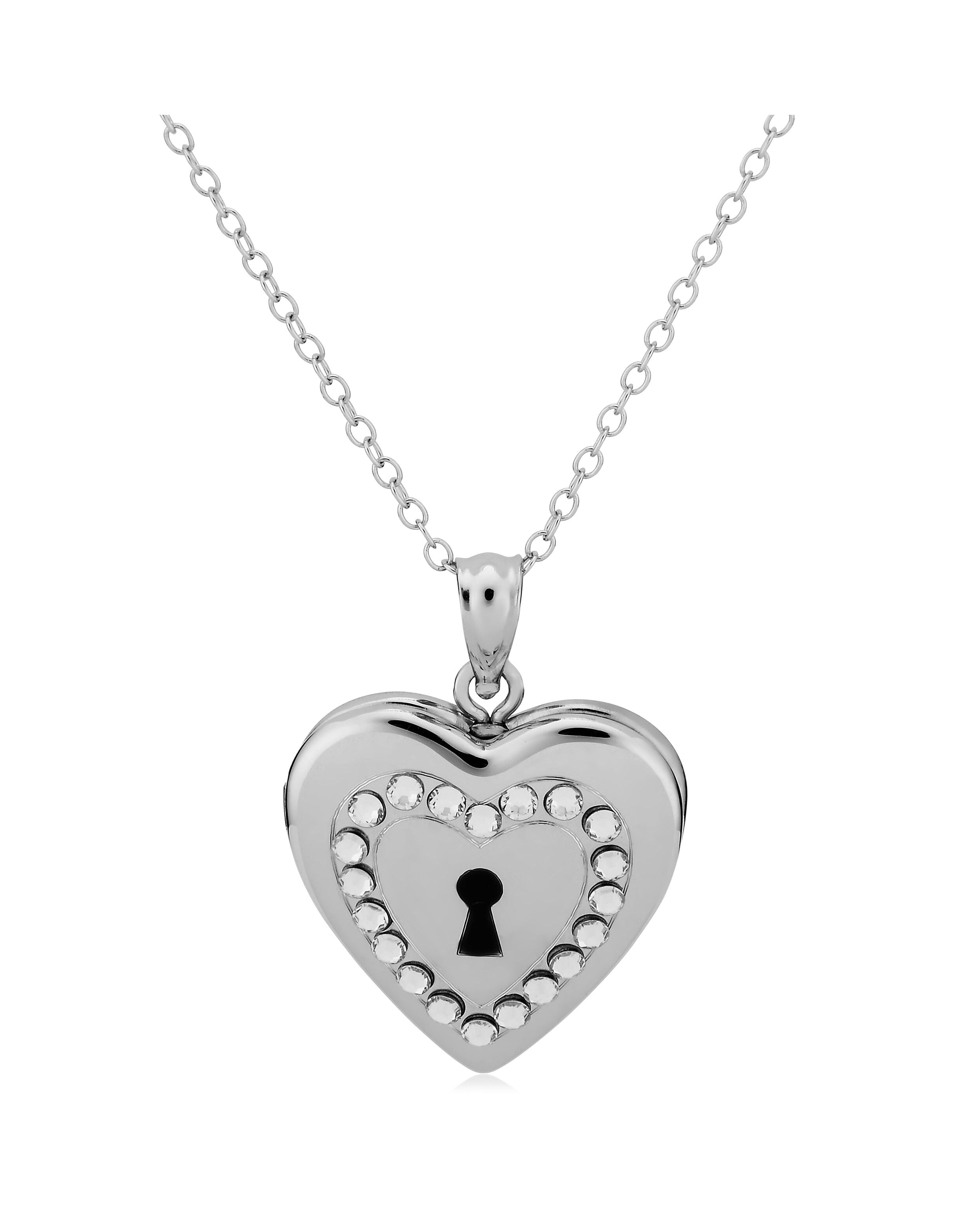 Sterling Silver With Crystals Keyhole Heart Locket Pendant Necklace (18 inch)