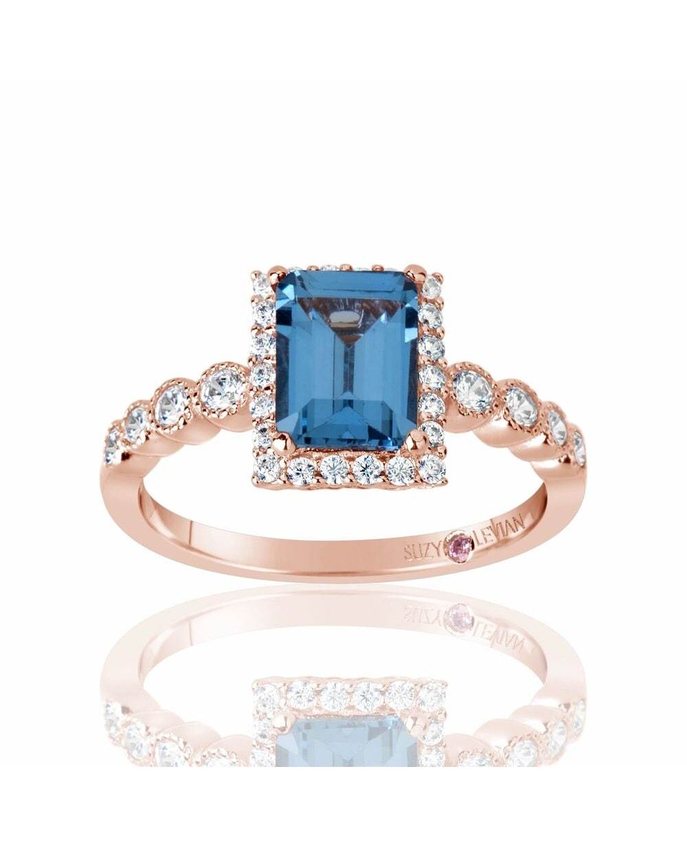 Suzy Levian Rose Sterling Silver Aqua & White Cubic Zirconia Ring