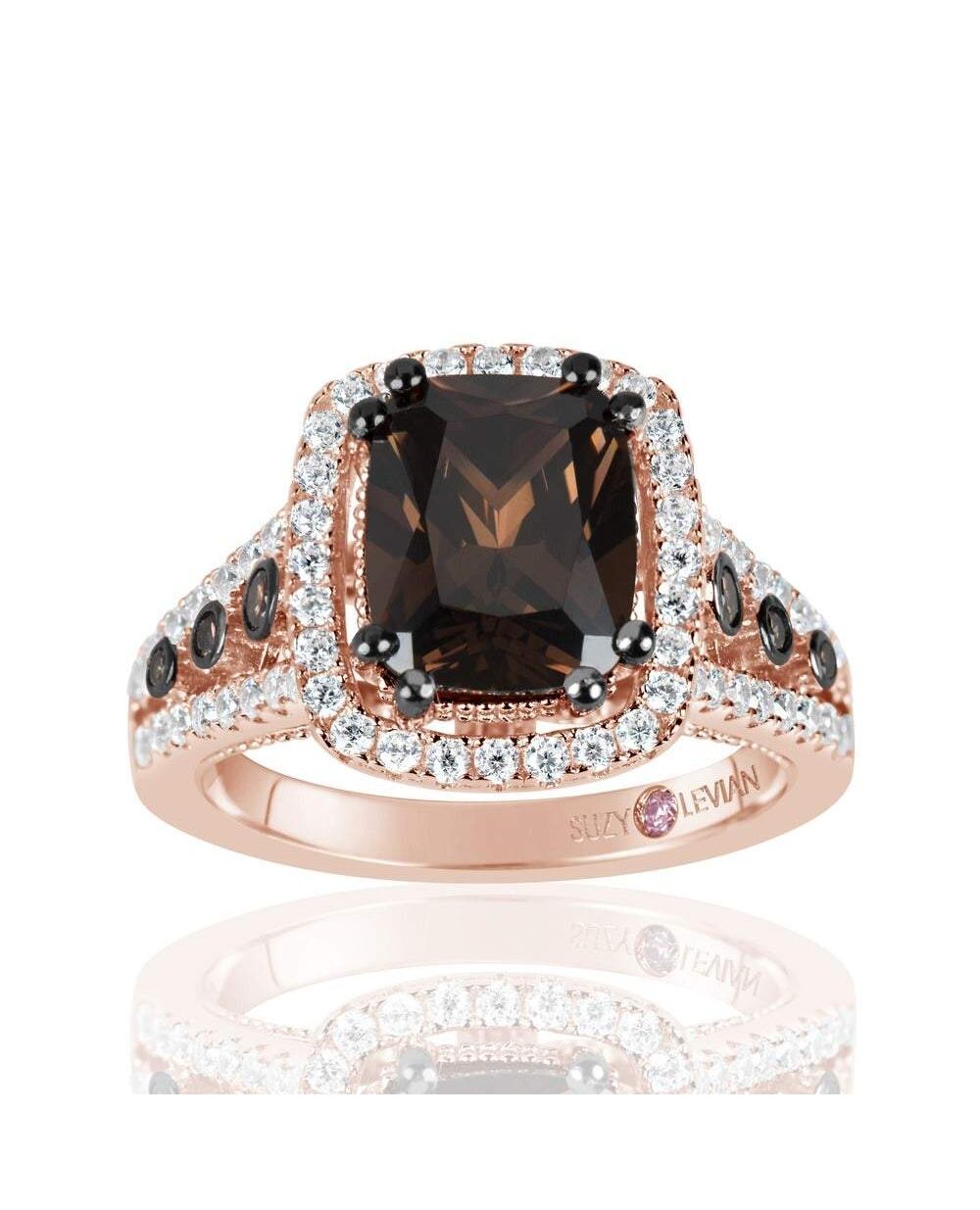 Suzy Levian Rose Sterling Silver Brown Chocolate and White Cubic Zirconia Engagement Ring
