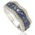 This ring features a sterling silver band with a wavy design and sparkling created white sapphires and blue sapphires in a pave setting.Features - Jewelry Type - FineBand Width - 3-4 mmStone - GemstoneSide Stone - DiamondGemstone Cut - RoundTotal Diamond Weight - Up to .5 CaratsJewelry Setting - PaveDiamond Cut - RoundRing Style - Anniversary, BandsGemstone Treatment Code - NCut Grade - Very GoodJewelry Finish - High PolishGemstone - SapphireMetal Color - WhiteMetal - Gold, Sterling SilverBirthstone Month - SeptemberGemstone Color - Blue