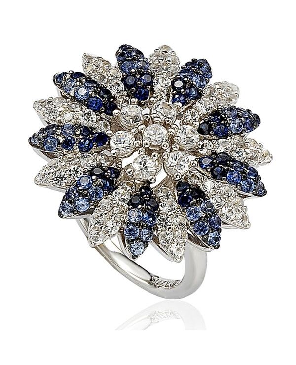 Suzy Levian Sapphire and Diamond in Sterling Silver and 18K Gold Logo Ring