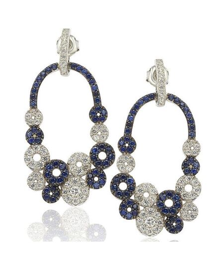 Suzy Levian Sterling Silver and 18k Gold Sapphire and Diamond Multi-circle Earrings