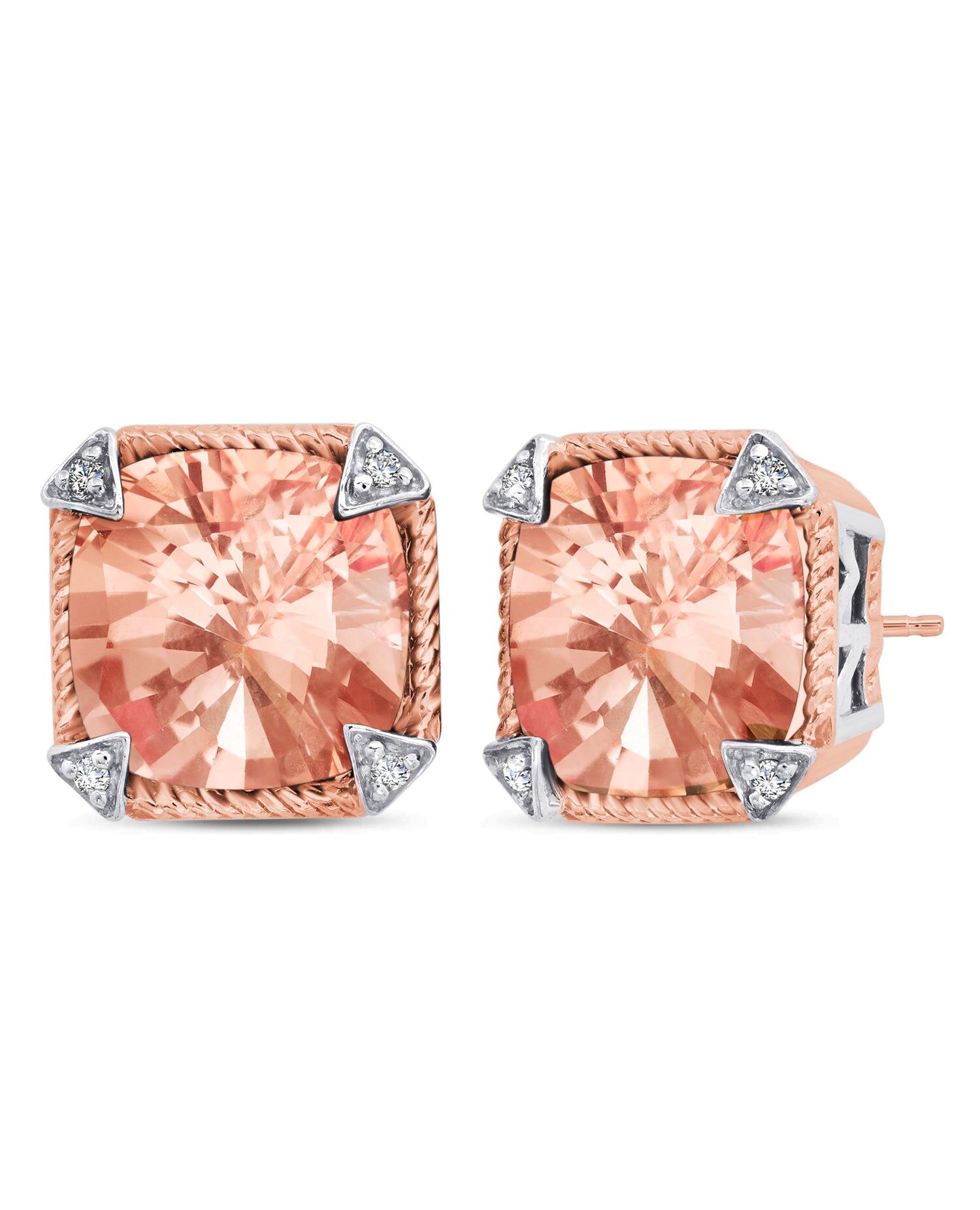 Two Tone Sterling Silver with 8mm Cushion Cut Gemstone Stud Earrings