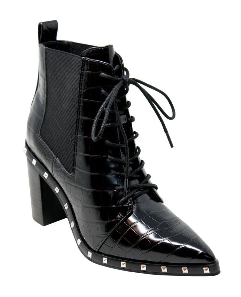 We have your cool casual look covered with this studded chunky heel bootie Size Info• Details & Care• • Heel style - • Toe shape - • Heel height - 3.2 inches• Boot Ankle to Shaft Height - 4.4 inches• Boot shaft opening circumference - 9.9 inches• ALL measurements noted are from a size 9